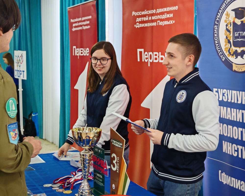 Торжественное мероприятие началось с интерактивных и познавательных площадок от учебных учреждений города Бузулука. Бузулукский гуманитарно-технологический институт (филиал) ОГУ представлял площадку «СПОРТ» и провел для всех желающих, которых было немало, увлекательную викторину по истории Олимпийских игр. Участники отвечали на вопросы, получали части пазла, которые в итоге собирали в картину с изображением российских спортсменов, одержавших победу на олимпийских играх. Самые активные участники поощрялись сладкими призами. Благодарим волонтеров, активистов первичного отделения института: студента 2 курса строительно-технологического факультета Боровитина Михаила и студентку 1 курса факультета экономики и права Алегину Полину за помощь в организации площадки. Продолжением стал концерт с награждениями, творческими номерами, получением первых паспортов юными активистами, и, конечно же, кульминацией всего мероприятия стало торжественное вступление в ряды Первых. От нашего института приняли участие: начальник отдела по работе с абитуриентами и продвижению образовательных программ Глазина А.В., студентка 2 курса факультета экономики и права Семёнова Вера, студентка 4 курса строительно-технологического факультета Конченко Татьяна и студентка 1 курса факультета экономики и права Агальцева Юлия, которая по счастливой случайности выиграла в лотерее брендированный шопер Движения Первых. Мы поздравляем первичное отделение города Бузулука с Днем Рождения и желаем благополучия, процветания и достижения всех высот! Отдел по работе с абитуриентами и продвижению образовательных программ
